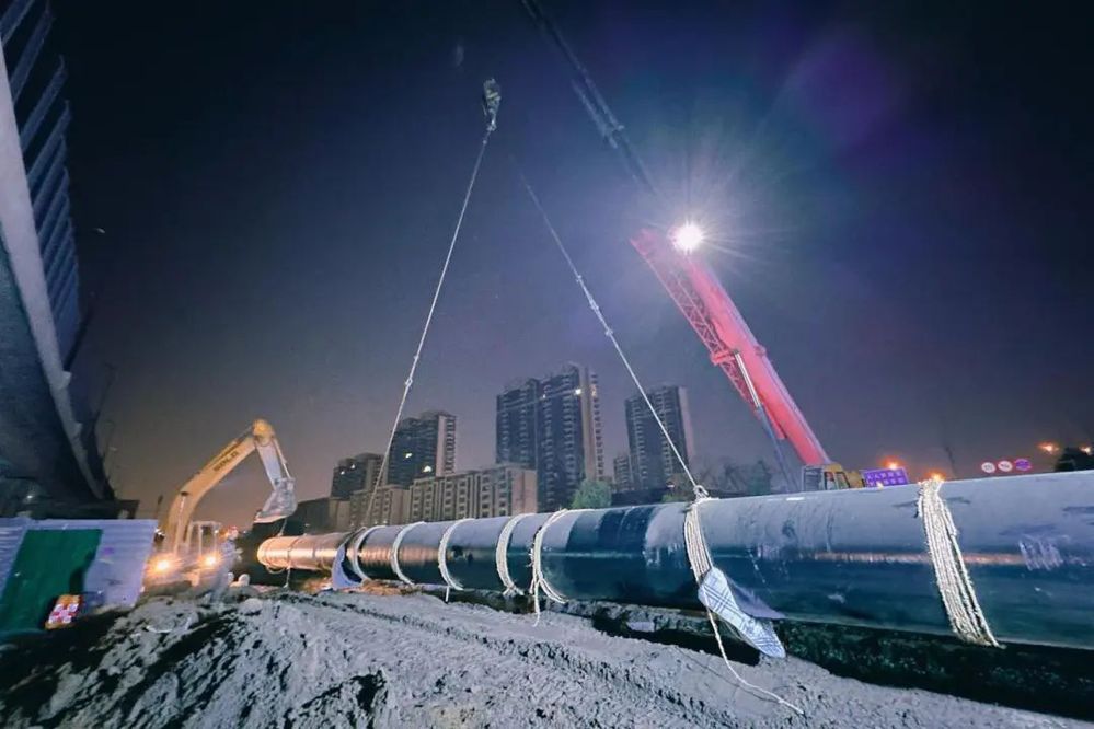為保證東部及南部主干線三期二標(biāo)段工程施工進(jìn)度,降低施工對(duì)城市日常生活的影響,3月21日晚7點(diǎn)30分,供熱公司對(duì)開發(fā)東路與京杭路十字路口處過(guò)京杭路地埋管進(jìn)行了地埋管道過(guò)路施工。