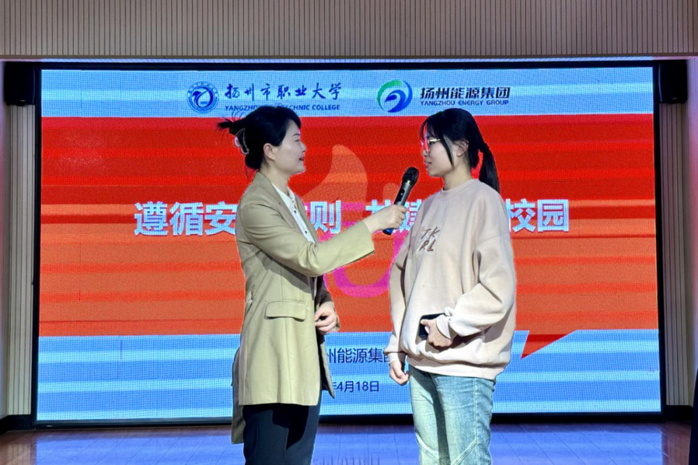 安全教育警示片拉開(kāi)了本次活動(dòng)的序幕,觸動(dòng)了在場(chǎng)師生職工的“安全弦”。接著,講師們進(jìn)行了一場(chǎng)內(nèi)容豐富的專(zhuān)題講座,介紹了燃?xì)夂碗娏υO(shè)備的工作原理,講解了常見(jiàn)的安全隱患及發(fā)生危險(xiǎn)時(shí)的應(yīng)對(duì)措施。安全知識(shí)問(wèn)答互動(dòng)環(huán)節(jié),教職工和同學(xué)們都熱情參與,現(xiàn)場(chǎng)氣氛活躍,將活動(dòng)推向了高潮?!氨敬位顒?dòng)非常有意義,企業(yè)走進(jìn)校園,學(xué)生走上講臺(tái),通過(guò)宣傳和實(shí)踐讓學(xué)生們認(rèn)識(shí)到燃?xì)夂碗娏Π踩驮谏磉?。”揚(yáng)州職大安全科負(fù)責(zé)人對(duì)能源集團(tuán)表達(dá)了感謝。
