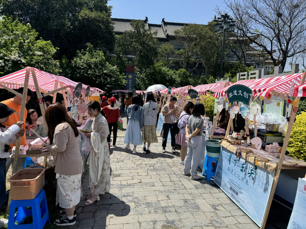 市集現(xiàn)場,攤位眾多,展品豐富多樣。既有傳統(tǒng)揚州刺繡、剪紙、葫蘆刻畫等精湛技藝,也有地道特色小吃與非遺節(jié)目演出。游客在輕松愉悅的購物娛樂中,深刻感受到了非遺文化的獨特魅力。