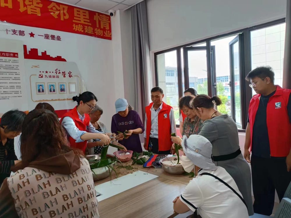 “粽葉香,裹五糧,包個粽子粘上糖,幸福生活萬年長?!庇质且荒甓宋绲?。為傳承民族傳統(tǒng)文化,增進鄰里感情,共同感受傳統(tǒng)文化的魅力,6月1日上午,城建物業(yè)公司在京杭融園和九境融園項目部組織小區(qū)居民開展迎端午包粽子活動。