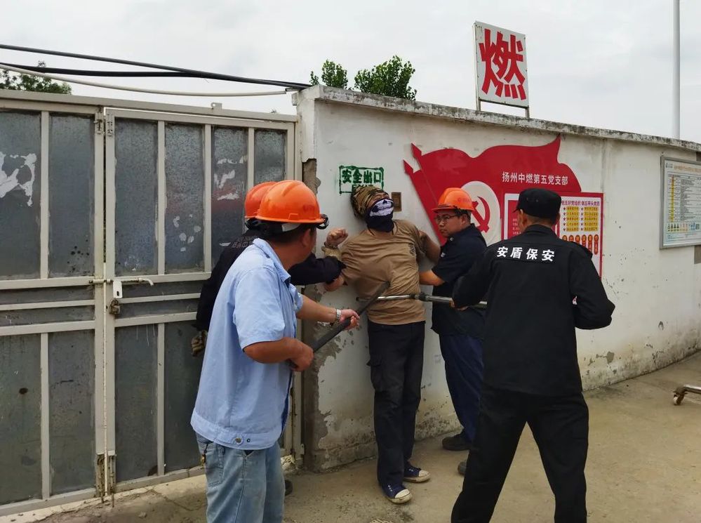 隨后,模擬了場(chǎng)站遭受不明人員破壞情景下的應(yīng)急處置。值班人員在巡查中發(fā)現(xiàn)場(chǎng)站有不明人員進(jìn)入,立即報(bào)值班經(jīng)理。值班經(jīng)理立即啟動(dòng)反恐應(yīng)急預(yù)案,迅速電話報(bào)警,并組織場(chǎng)站人員與門衛(wèi)共同制服恐怖分子,并交送公安部門處置。
