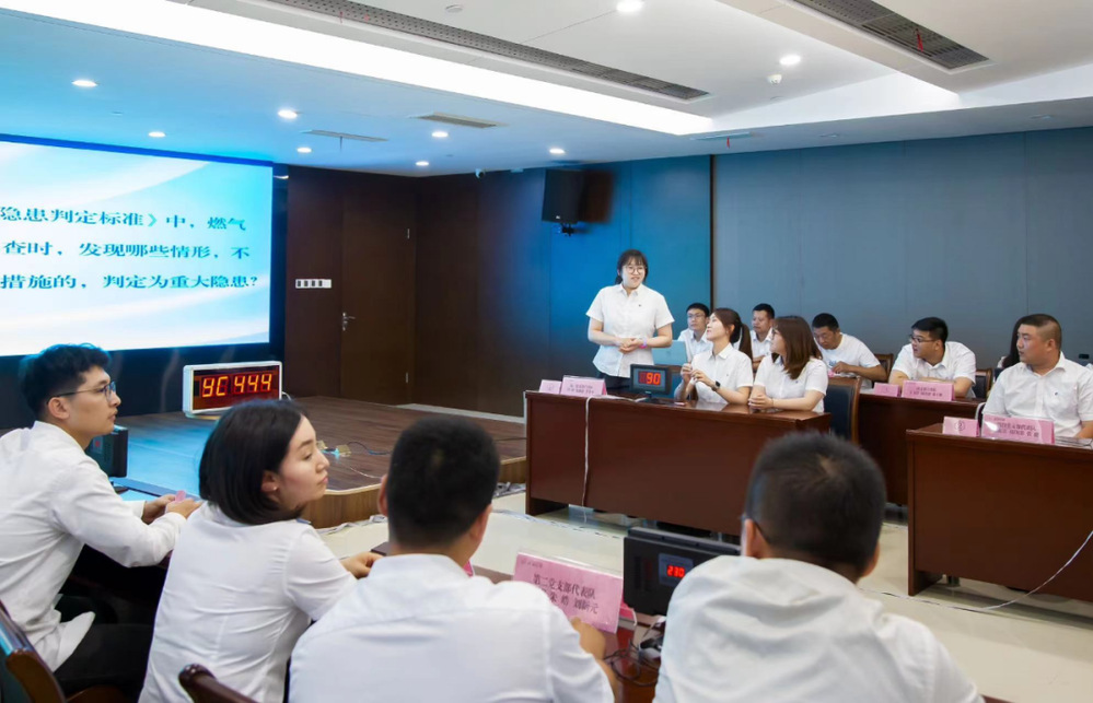 本次競賽采取選手必答、搶答、看圖找隱患和觀眾互動的形式開展,主要內(nèi)容包括:習(xí)近平總書記關(guān)于安全生產(chǎn)重要論述、安全生產(chǎn)法律法規(guī)和燃?xì)庑袠I(yè)規(guī)范以及燃?xì)獍踩湫碗[患。
