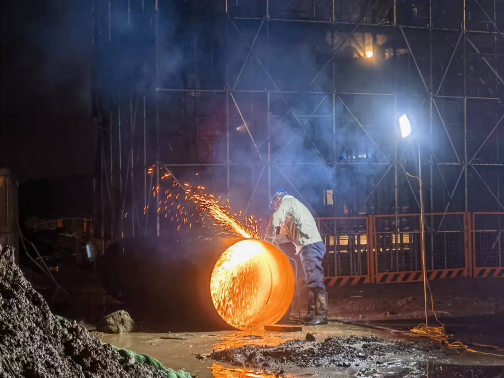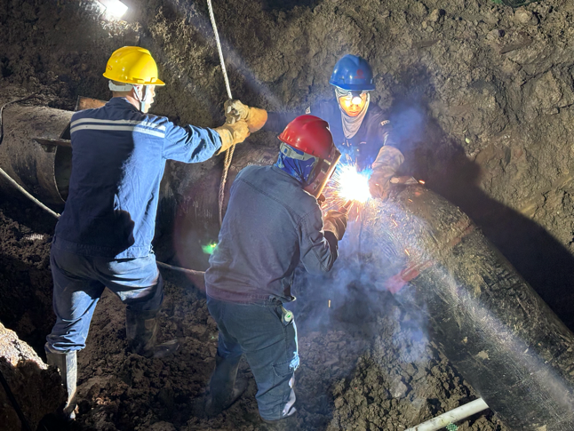 一線員工們淋著雨,站在渾濁的泥水里,全然不顧流淌的汗水,一鼓作氣的切割、吊移、校正、焊接……克服悶熱潮濕、蚊蟲叮咬等考驗(yàn),高效有序地施工,40余名現(xiàn)場(chǎng)工程人員全力奮戰(zhàn),協(xié)同配合,至23日凌晨完成全部工作任務(wù),提前6小時(shí)恢復(fù)供水。