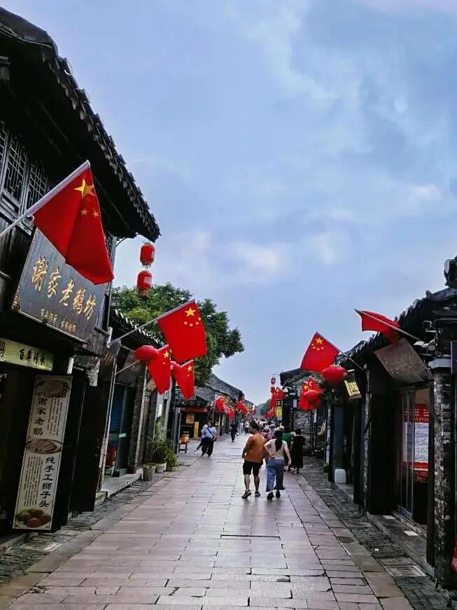氛圍營造工程以紅動?xùn)|關(guān)為主題,在沿街路燈桿、商鋪門前有序懸掛鮮艷五星紅旗。一面面紅旗與古街的歷史肌理交織,形成紅映古街、家國情長的喜慶畫卷,讓家國情懷浸潤每處角落。