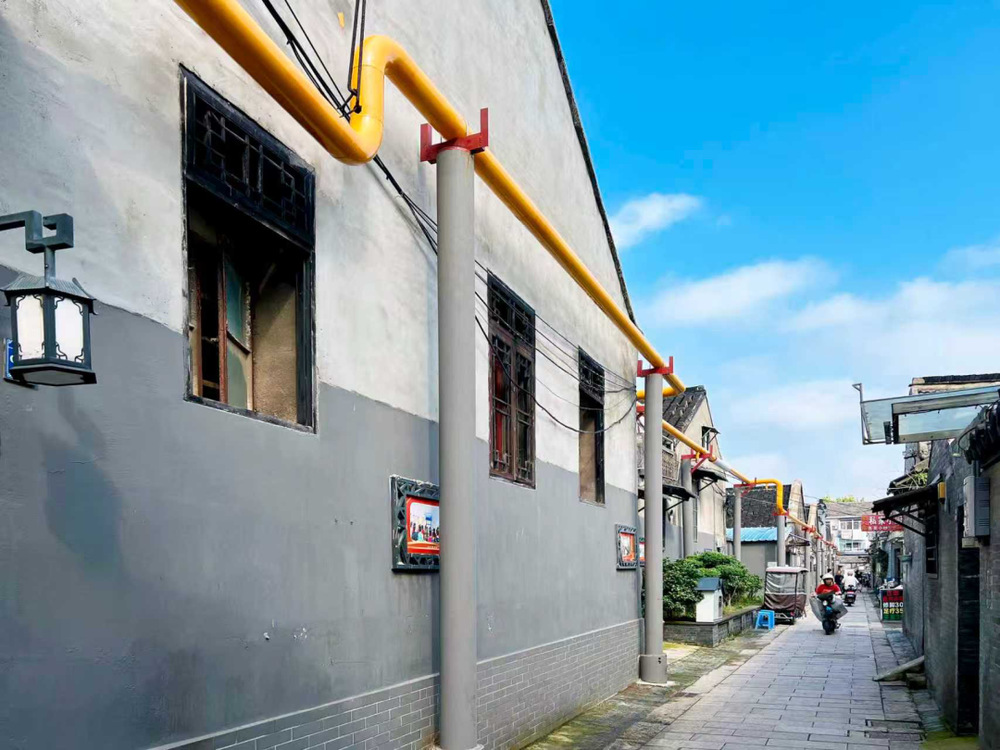 揚州市老城區(qū)街巷狹窄、房屋結(jié)構(gòu)復(fù)雜,傳統(tǒng)的管道鋪設(shè)方式面臨巨大挑戰(zhàn),致使部分片區(qū)居民長期無法使用管道天然氣。為解決這一民生痛點,揚州中燃公司市場部聯(lián)合東關(guān)街道多次走訪調(diào)研,深入探討,因地制宜采取了“設(shè)計更新、載立支柱”的施工方案。