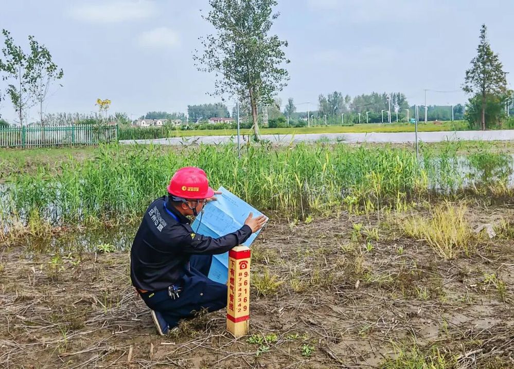 今年7月盛夏,韋煒一如既往例行巡線,途中行至沙頭門站,發(fā)現(xiàn)向東約50米處一小河塘正施工開挖擴(kuò)建。他立即想起原較淺小河塘下面有一根中壓PE315運行燃?xì)夤艿?,控制著李典?zhèn)、頭橋鎮(zhèn)氣源,且河塘兩側(cè)均有燃?xì)夤芫€標(biāo)識樁,河塘施工前并未收到管線對接通知。韋煒第一時間向部門領(lǐng)導(dǎo)匯報現(xiàn)場情況,隨后走訪群眾尋找到河塘主人和所屬村村委會進(jìn)行交涉。