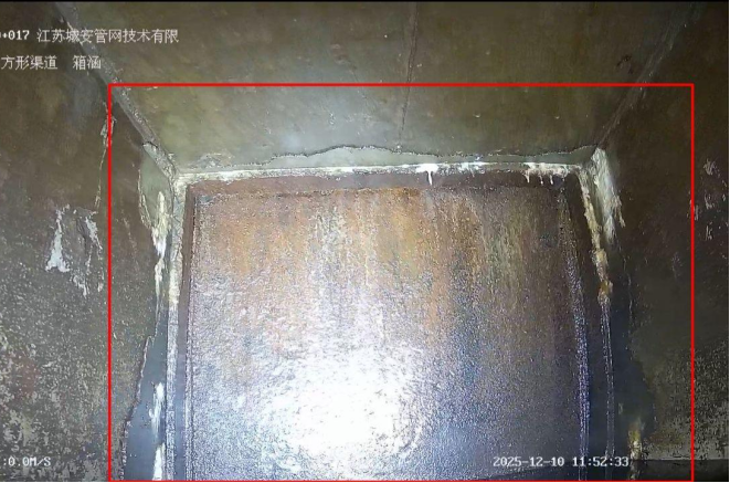 面對(duì)箱涵內(nèi)淤泥沉積、水體渾濁、空間狹窄等復(fù)雜工況,傳統(tǒng)檢測(cè)方案需提前進(jìn)行現(xiàn)場(chǎng)預(yù)處理,不僅耗時(shí)久、成本高,檢測(cè)精度也難以保證。為此,城安公司采用機(jī)器人探測(cè)方案,以科技手段突破檢測(cè)瓶頸。