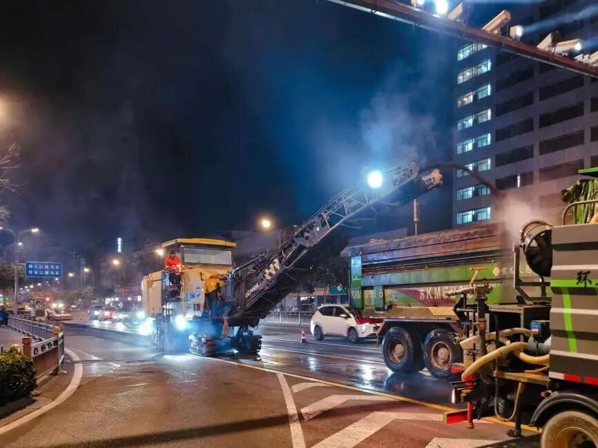 “揚(yáng)馬”賽道,既是速度的競(jìng)技場(chǎng),也是城市形象的展示窗。面對(duì)去年夏季高溫導(dǎo)致的車(chē)轍,以及前期巡查發(fā)現(xiàn)的網(wǎng)裂、局部坑塘等病害,上善公司組織青年技術(shù)骨干開(kāi)展“地毯式”排查,科學(xué)制定專項(xiàng)維修方案。自大規(guī)模銑刨維修工作啟動(dòng)以來(lái),青年職工們帶領(lǐng)多支專業(yè)施工隊(duì)伍,合力攻堅(jiān),連續(xù)奮戰(zhàn)十余個(gè)夜晚,高效完成了文昌東路、萬(wàn)福西路、文昌中路等核心路段的病害處置,累計(jì)維修瀝青路面面積超13000平方米。