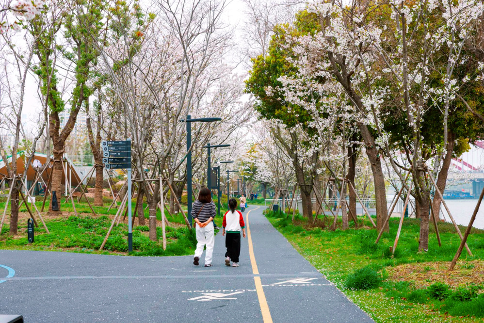 除了賞櫻,“運河十里”示范段還精心布局了多元活動場景,既有跑步道、漫步道、兒童沙池等休閑空間,滿足市民、游客春日踏青、親子游玩等需求,更融入了愛奇藝樂園、洞穴咖啡廳、“禁止跳水”日咖夜酒等新業(yè)態(tài),讓春日時光既有自然賞味,也有現(xiàn)代意趣。