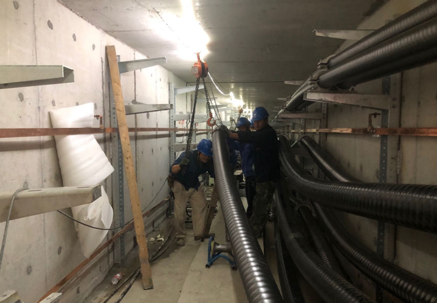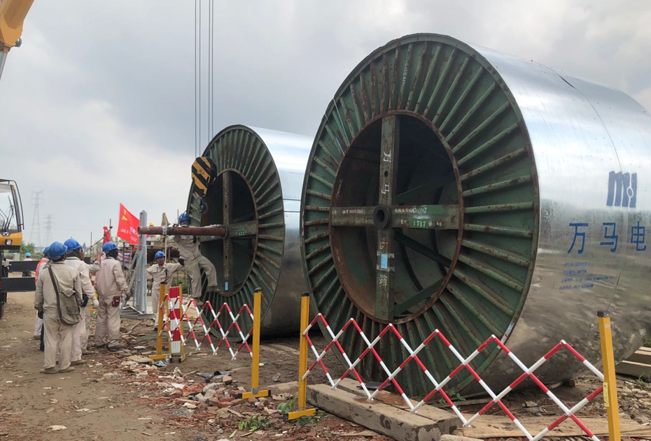 隨著快速路工程的穩(wěn)步推進(jìn),電力管線遷改工作也在同步進(jìn)行。“一二三、架起來!”9月11日下午,在萬??焖俾?/span>220KV電力管廊工程電纜隧道內(nèi),一根長約450米,重約20噸的電纜線盤被電力工人用機(jī)械抬到了托臂上。