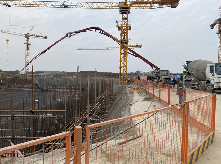 與此同時廠區(qū)內(nèi)施工人員正在加緊對二沉池、接觸消毒池、反硝化深床濾池等主體構筑物的土方施工,生化池其余五個片區(qū)的土方、墊層施工也在有序進行。北山一期工程第一塊大體積混凝土底板的順利澆筑,大大鼓舞了項目參建各方的士氣,預計本月底北山污水處理廠一期工程主體構筑物土方施工工作將全部完成。