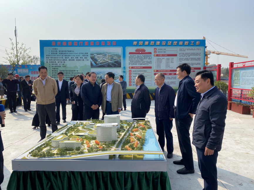 10月22日上午,市人大常委會(huì)副主任沙志芳、范天恩和秘書長劉曉明一行赴揚(yáng)州頤和醫(yī)療健康中心項(xiàng)目施工現(xiàn)場(chǎng)進(jìn)行調(diào)研,市衛(wèi)健委主要負(fù)責(zé)人陪同調(diào)研。城控集團(tuán)總經(jīng)理夏正東、副總經(jīng)理方璇智和置業(yè)公司相關(guān)人員參加活動(dòng)。