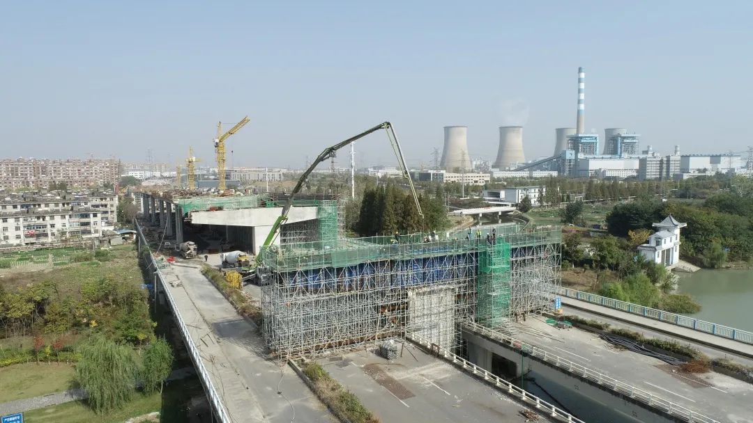 “YH86蓋梁順利完成,兩側(cè)冷卻管通水正常。”11月8日下午7點(diǎn),運(yùn)河南北路快速化改造工程(萬(wàn)福西路-物港路北)項(xiàng)目鏖戰(zhàn)10小時(shí)后,跨古運(yùn)河段主線橋最后一聯(lián)墩柱蓋梁順利澆筑,累計(jì)澆筑390方。