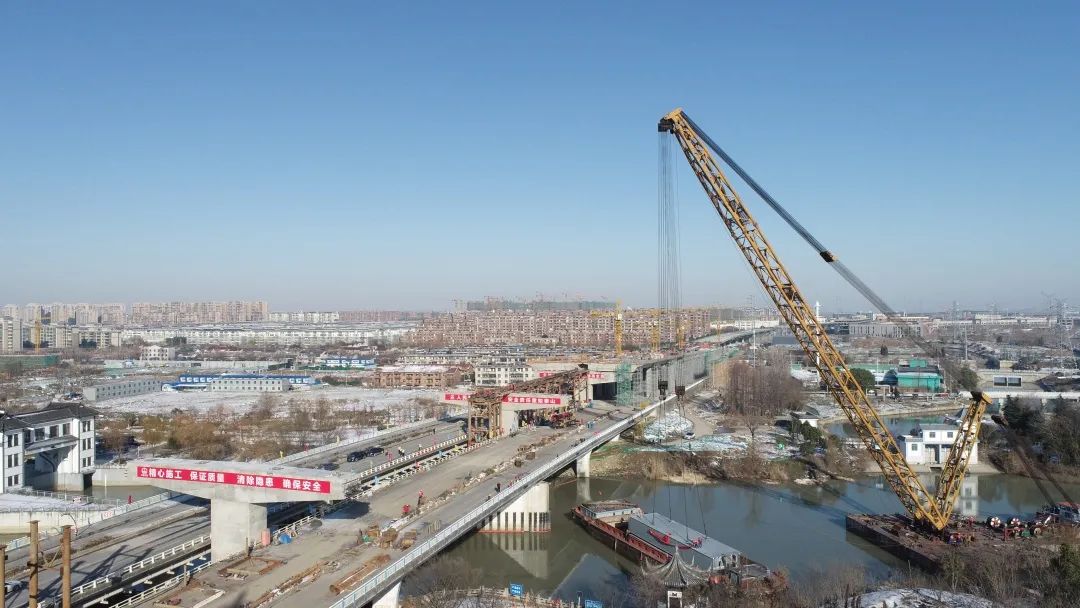 近日,揚州運河南北路快速化改造二期工程又一次迎來重大節(jié)點:跨古運河段夫差橋首段鋼箱梁成功吊裝,標(biāo)志著項目關(guān)鍵施工節(jié)點取得了階段性勝利。