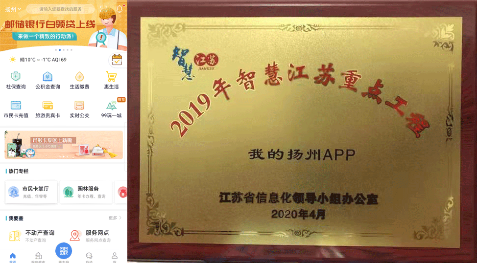 “我的揚(yáng)州APP”入選智慧江蘇重點(diǎn)工程,成功入選第十九屆中國政府網(wǎng)站績效評估地級市十大優(yōu)秀創(chuàng)新案例;“我的揚(yáng)州APP”建設(shè)獲工作創(chuàng)新獎(jiǎng)。