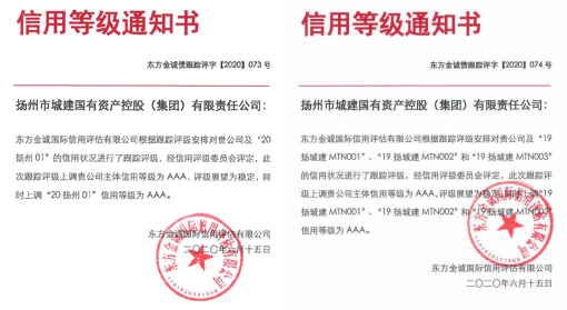 城控集團(tuán)主體信用等級提升至AAA;成功發(fā)行3億美元境外債;發(fā)行揚(yáng)州市首單“疫情防控債”;公用控股集團(tuán)主體信用等級評定為AA。
