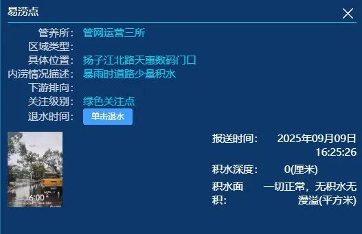 公司依托“城排通”智慧管理,對(duì)管網(wǎng)運(yùn)行狀態(tài)進(jìn)行實(shí)時(shí)監(jiān)測(cè)。在關(guān)鍵節(jié)點(diǎn)安裝雨量傳感器、流量計(jì)、液位計(jì)等感知設(shè)備收集雨情、水情、管網(wǎng)液位等數(shù)據(jù),及時(shí)上傳至管理平臺(tái),一旦數(shù)據(jù)超出預(yù)警閾值,系統(tǒng)自動(dòng)報(bào)警,快速定位,為防汛決策提供科學(xué)依據(jù)。通過(guò)平臺(tái),可遠(yuǎn)程調(diào)度應(yīng)急設(shè)備與人員,實(shí)時(shí)查看重點(diǎn)點(diǎn)位現(xiàn)場(chǎng)情況,實(shí)現(xiàn)精準(zhǔn)指揮,使防汛從“被動(dòng)處置”轉(zhuǎn)向“主動(dòng)預(yù)警”,大大提高了防汛工作效率。同時(shí),公司注重歷次雨后復(fù)盤,使用“城排通”系統(tǒng)防汛板塊及時(shí)進(jìn)行雨后總結(jié),盯準(zhǔn)薄弱環(huán)節(jié),及時(shí)完善應(yīng)對(duì)策略,為后續(xù)更好地開展防汛工作打牢基礎(chǔ)。