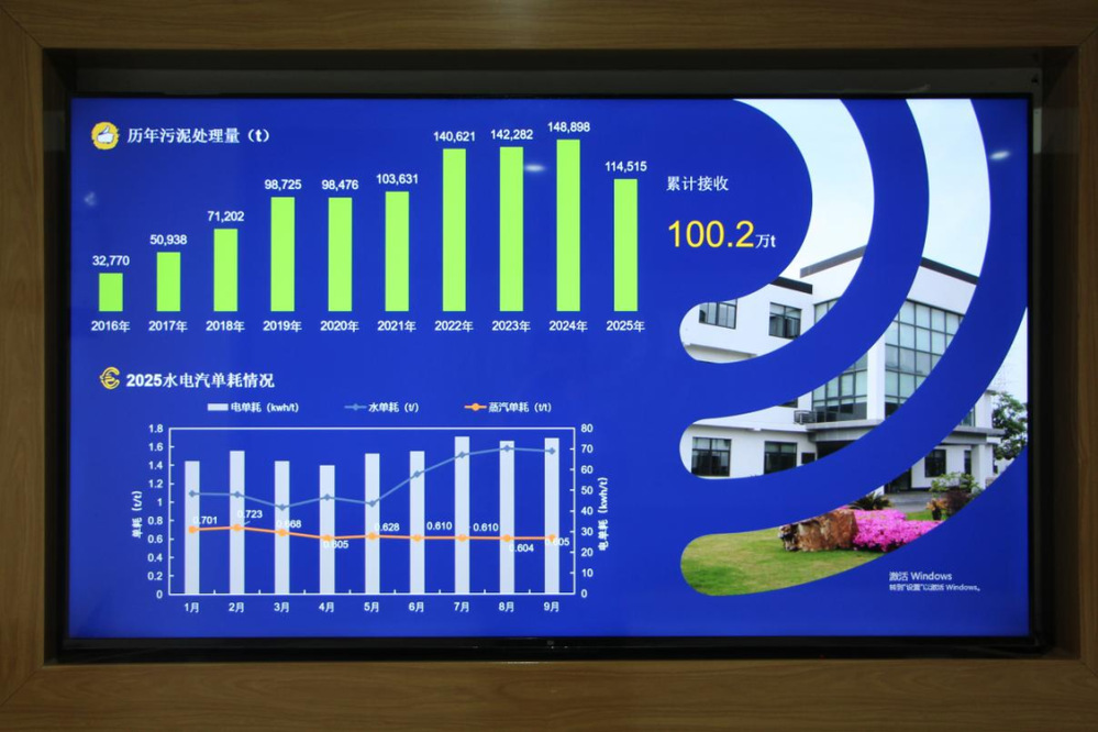 在工藝管控與環(huán)保達(dá)標(biāo)層面,企業(yè)搭建全流程智能監(jiān)測(cè)體系:污泥進(jìn)場(chǎng)時(shí),通過(guò)自動(dòng)采樣設(shè)備檢測(cè)金屬、有機(jī)物含量,杜絕不合格污泥入場(chǎng);干化過(guò)程中,中控系統(tǒng)實(shí)時(shí)監(jiān)控溫度、濕度、蒸汽壓力等十余項(xiàng)關(guān)鍵參數(shù),偏差超限時(shí)自動(dòng)報(bào)警調(diào)整,通過(guò)精細(xì)化管理,企業(yè)當(dāng)前蒸汽單耗較設(shè)計(jì)值下降32%,用電單耗較設(shè)計(jì)值下降15%,均處于行業(yè)領(lǐng)先水平;尾水、廢氣排放均遠(yuǎn)低于國(guó)家排放標(biāo)準(zhǔn),十年來(lái)污染物排放合格率始終保持100%,真正實(shí)現(xiàn)“安全處置、環(huán)保達(dá)標(biāo)、資源循環(huán)”的技術(shù)閉環(huán)。
