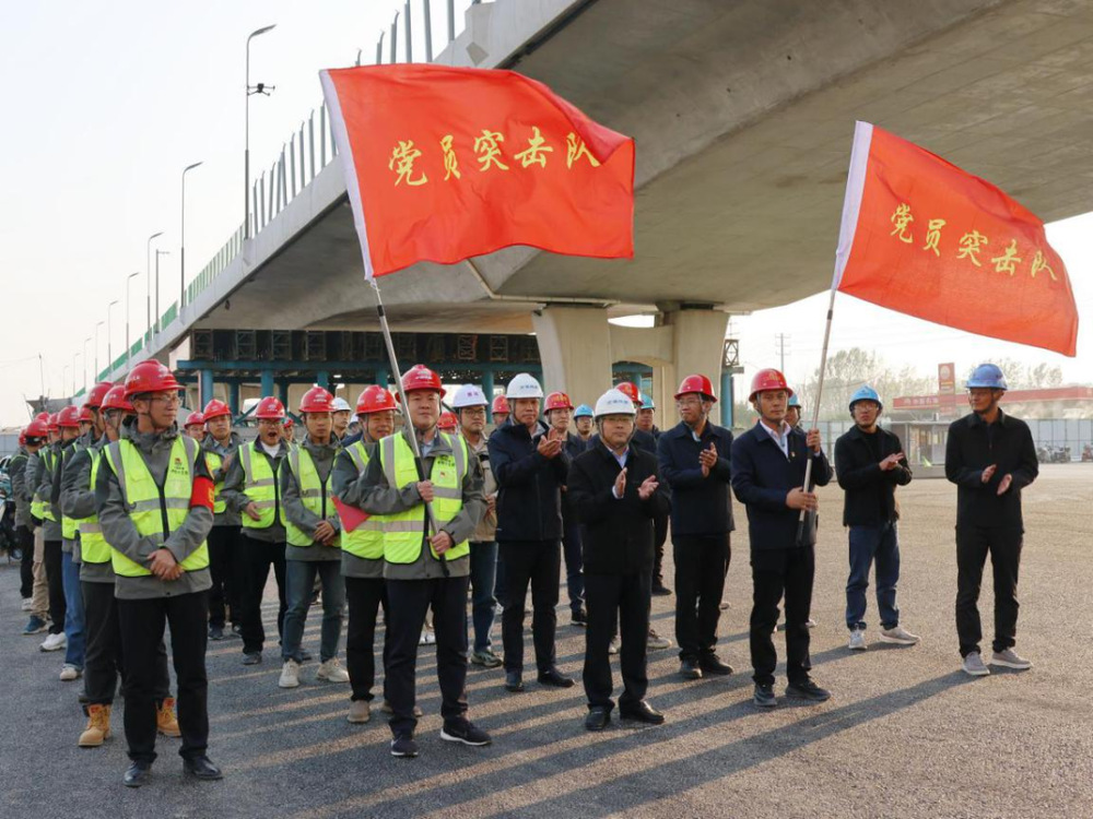 為充分發(fā)揮黨組織戰(zhàn)斗堡壘作用和黨員先鋒模范作用,助力潤(rùn)揚(yáng)南路快速化改造工程按期通車(chē),10月28日下午,萬(wàn)福公司黨支部聯(lián)合潤(rùn)揚(yáng)路南延項(xiàng)目黨支部,在施工現(xiàn)場(chǎng)舉行黨員突擊隊(duì)啟動(dòng)儀式。萬(wàn)福公司領(lǐng)導(dǎo)班子成員及現(xiàn)場(chǎng)工作人員;中鐵十五局、邗建集團(tuán)項(xiàng)目書(shū)記、項(xiàng)目經(jīng)理和監(jiān)理單位工作人員出席儀式。