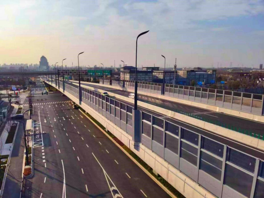 當(dāng)銀灰色的高架橋面車流不息,兩側(cè)3米高的弧形聲屏障不僅守護著沿線居民的靜謐生活,更在陽光照射下悄然將光能轉(zhuǎn)化為電能——這是萬??焖俾窎|延生態(tài)科技新城段正在上演的“綠色魔法”。作為江廣快速路的重要組成部分,這條剛剛實現(xiàn)通行的交通動脈,憑借聲屏障光伏發(fā)電項目的落地,成為揚州首個“快速路網(wǎng)+新能源”融合試點示范項目,為城市綠色發(fā)展注入新動能。